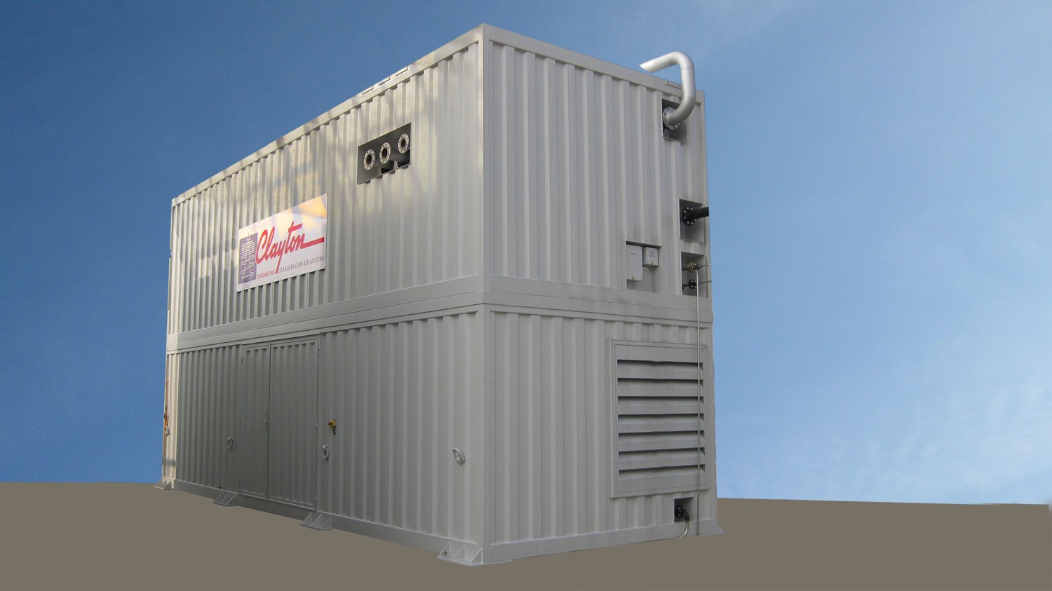 Het Clayton stoomketelhuis geïntegreerd in container is een volledig autonoom stoomtoevoersysteem dat snel ter plaatse kan worden aangesloten en indien nodig makkelijk kan worden verplaatst.
