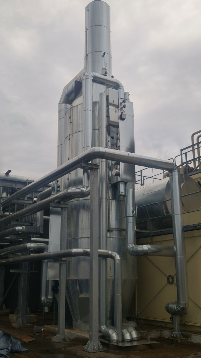 The Clayton Exhaust Gas Boiler is a single coil, water tube boiler with forced circulation of similar construction to the world-famous Clayton Steam Generator. The boiler consists of a number of cylindrical sections, which we call pancakes. The number of sections used depends on the heat output requirements of the boiler. The staggered (zigzag) configuration of the pancakes, one above the other, improves heat transfer from the exhaust gases to the tubes. Each pancake can expand independently of the others due to localised temperatures. The spacing between tubes varies with each Exhaust Gas Boiler model and the free gas section determines the gas side resistance.