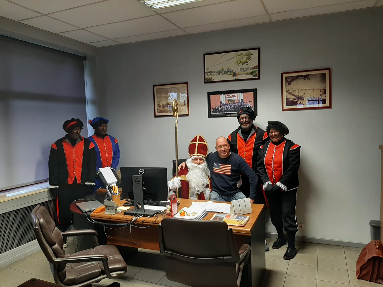 This morning we had the pleasure of welcoming Saint Nicholas. After his long journey from 'Spain', he dropped by Clayton in Bornem today. Of course he and his petes did not come empty-handed, the candy and chocolate was handed out in large numbers as all children were good this year!