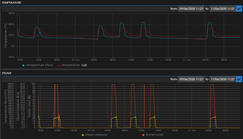 Da die Fernverbindung Sie rund um die Uhr mit Ihrem Dampfgenerator verbindet, können Sie den Prozess immer im Auge behalten. Einige Merkmale unseres Fernüberwachungsdienstes sind: