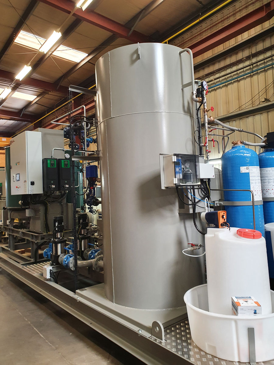 For multiple installations or large steam capacities, the steam generator(s) will be delivered as a separate item, although the feedwater treatment equipment can still be delivered as a skid assembly. This feedwater package also includes all necessary valves, fittings, filters and controls.